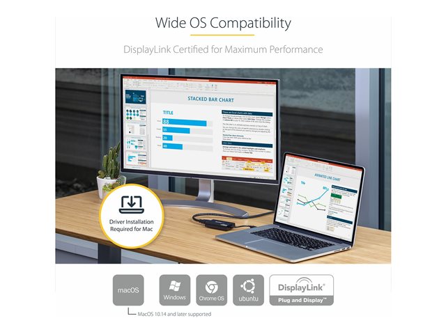 4K 30Hz Ultra HD - DisplayLink-certifierad - USB Type-A till HDMI-skärmadapteromvandlare för bildskärm - Externt video- och grafikkort - Mac och Windows - Adapterkabel - TAA-kompatibel - USB typ A hane till HDMI hona - 20 cm - svart - USB-ström + -ljud - för P/N: HDDVIMM3, HDMM12, HDMM15, HDMM1MP, HDMM2MP, HDMM3, HDMM3MP, HDMM50A, HDMM6, HDPMM50