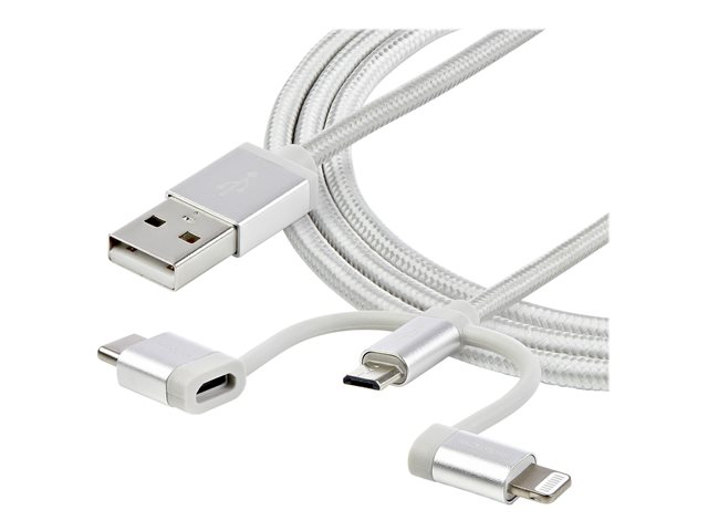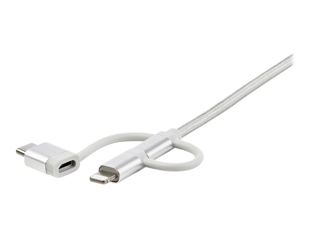 USB till Micro-USB eller USB-C eller Lightning för iPhone/ iPad/iPod/Android - Apple MFi-certifierad - 3 i 1 USB-laddare - Vävd - USB-kabel - USB (hane) till mikro-USB typ B, Lightning, 24 pin USB-C (hane) - 1 m - silver