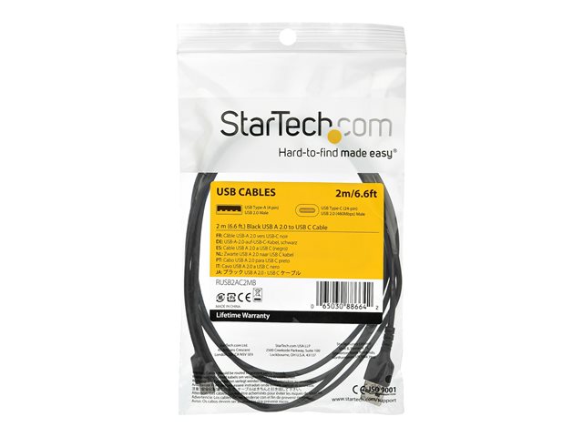 StarTech.com 2 m USB 2.0 till USB-C-kabel - svart