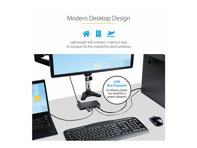 Enskild 4K 60 Hz HDMI 2.0-skärm - Kompakt HDMI KVM-switch för stationär/bärbar dator - USB-bussdriven - Thunderbolt 3-kompatibel - Omkopplare för tangentbord/video/mus/ljud - 2 x KVM/ljud - skrivbordsmodell